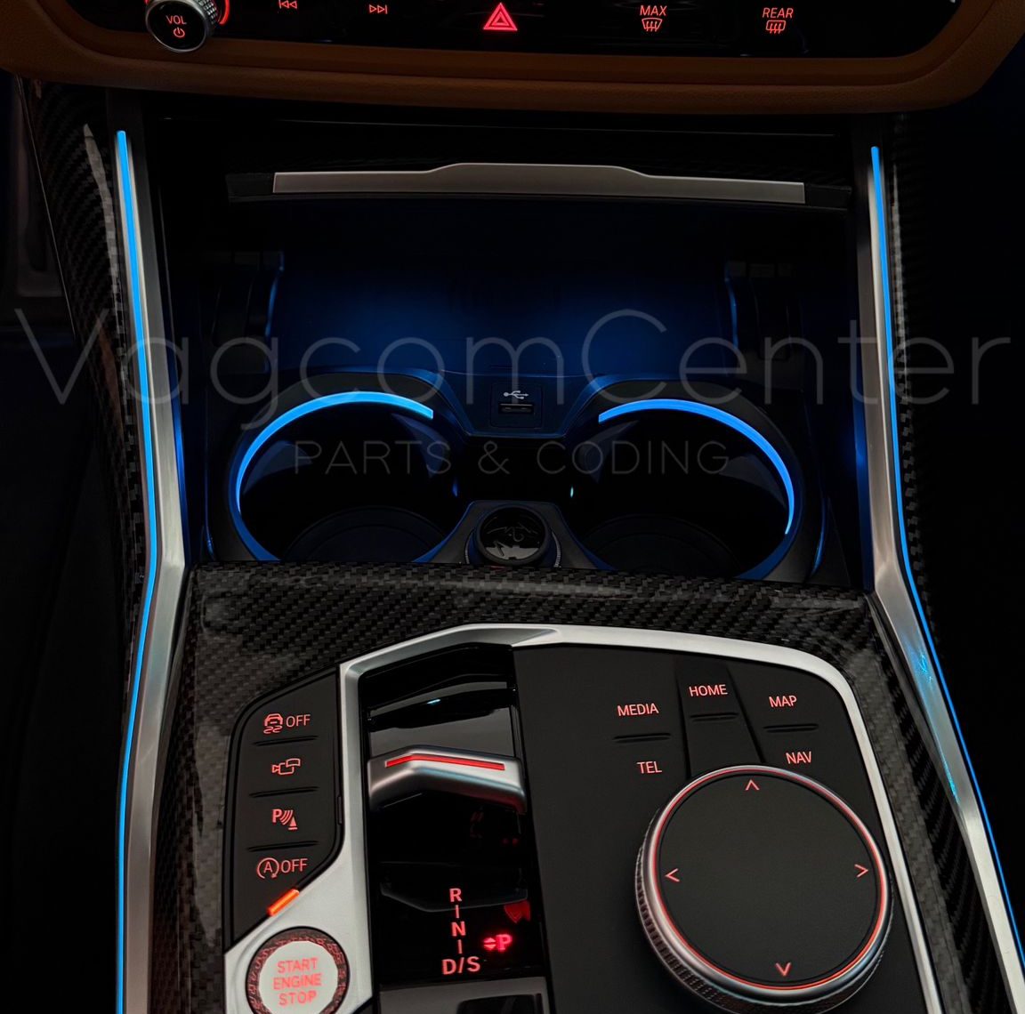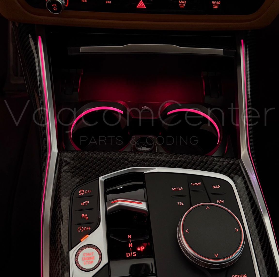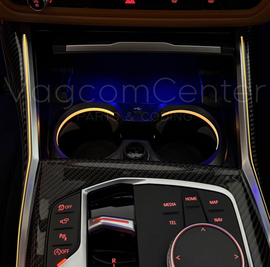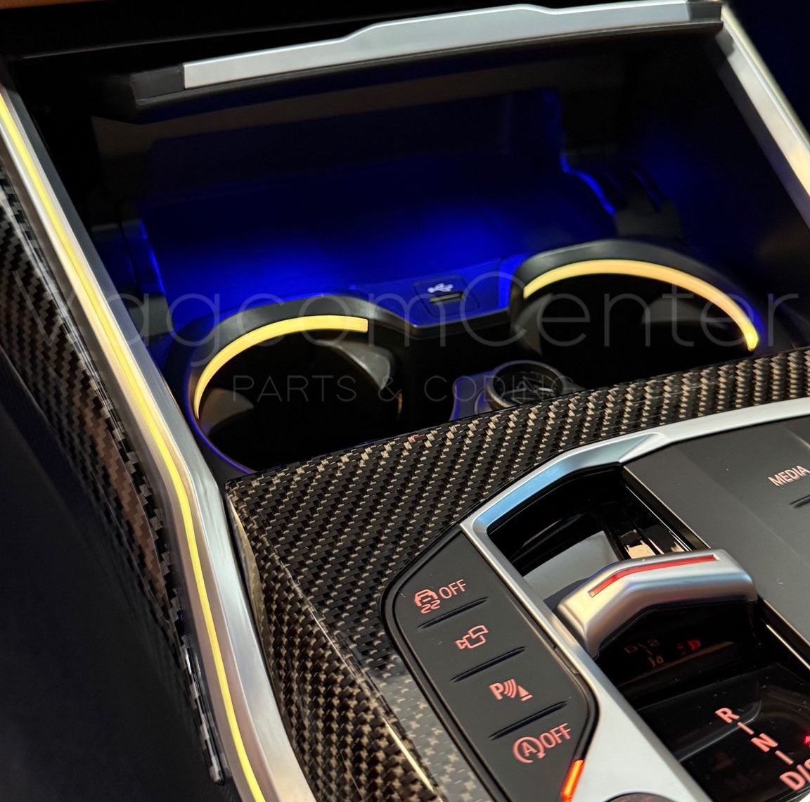 BMW 3-4 Serileri için Ambiyans aydınlatmalı bardaklık trim’i.